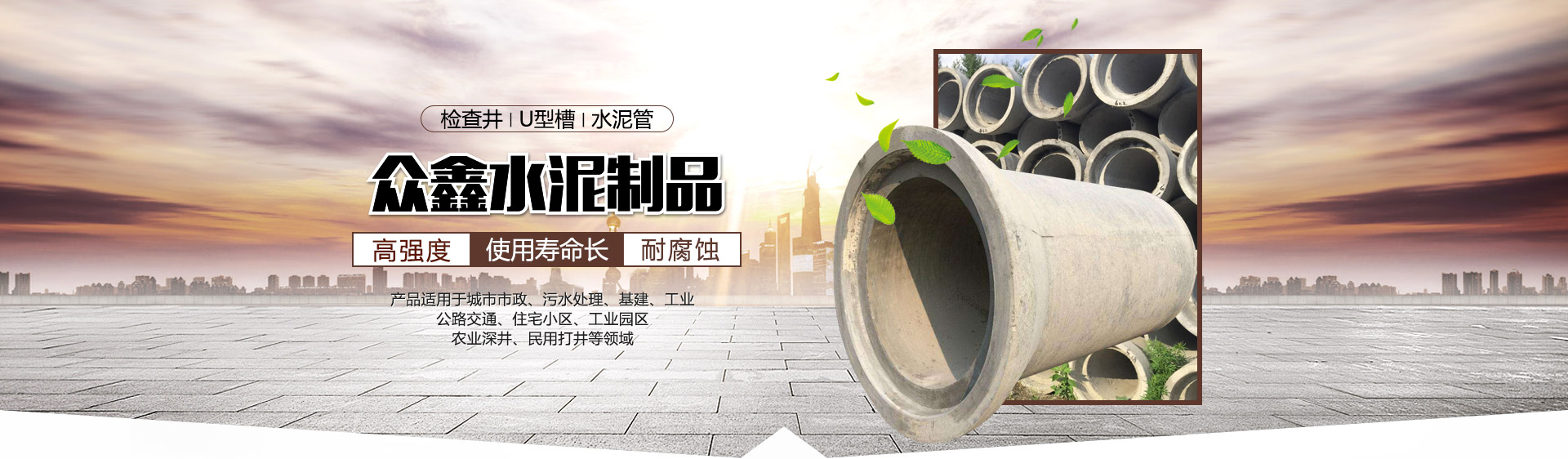 吉林眾鑫水泥制品有限公司,位于吉林省吉林市龍?zhí)秴^(qū)江北鄉(xiāng)官地村,交通便利,廠區(qū)占地面積2萬余平,公司秉承客戶至上,信譽為首,以人為本,安全為先為經(jīng)營理念,其主要生產(chǎn)各種規(guī)格的平口和承插口鋼筋混凝土排水水泥管,水泥預(yù)制檢查井、u型槽等水泥制品。適用于城市市政、污水處理、基建、公路交通、住宅小區(qū)、工業(yè)園區(qū)、工業(yè)、農(nóng)業(yè)深井、民用打井等領(lǐng)域。